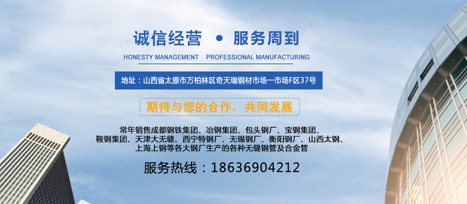 山西衡泰尚盈貿(mào)易有限責(zé)任公司是集生產(chǎn)加工經(jīng)營于一體的無縫鋼管、不銹鋼管、合金管、鍋爐管、液壓支柱管、方管、方矩管、不銹鋼板等的大型企業(yè),常年銷售成都鋼鐵集團、冶鋼集團、包頭鋼廠、寶鋼集團、鞍鋼集團、天津大無縫、西寧特鋼廠、無錫鋼廠、衡陽鋼廠、山西太鋼、上海上鋼等各大鋼廠生產(chǎn)的各種無縫鋼管及合金管。